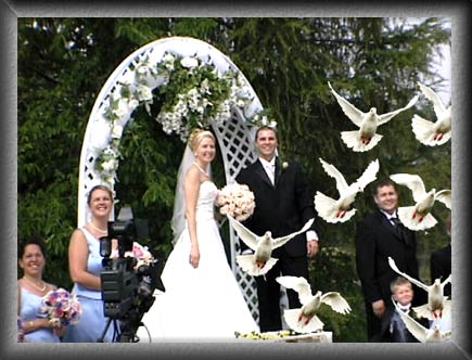 "Legend holds that if doves appear on your wedding day, a happy home shall prevail."
